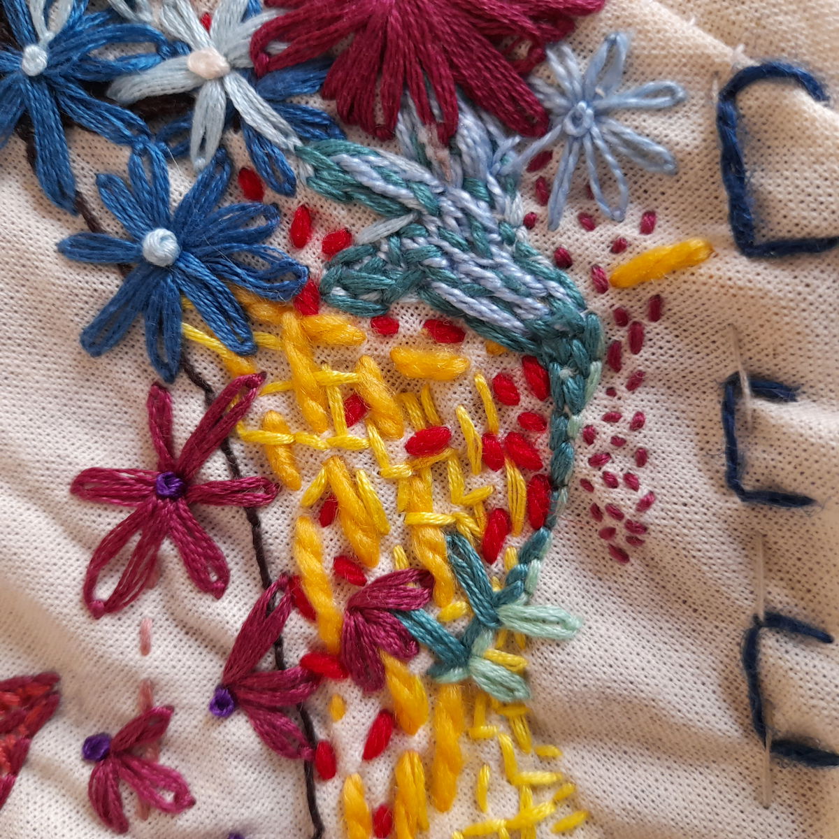 ♥Técnica mixta: dibujo y bordado sobre tela♥